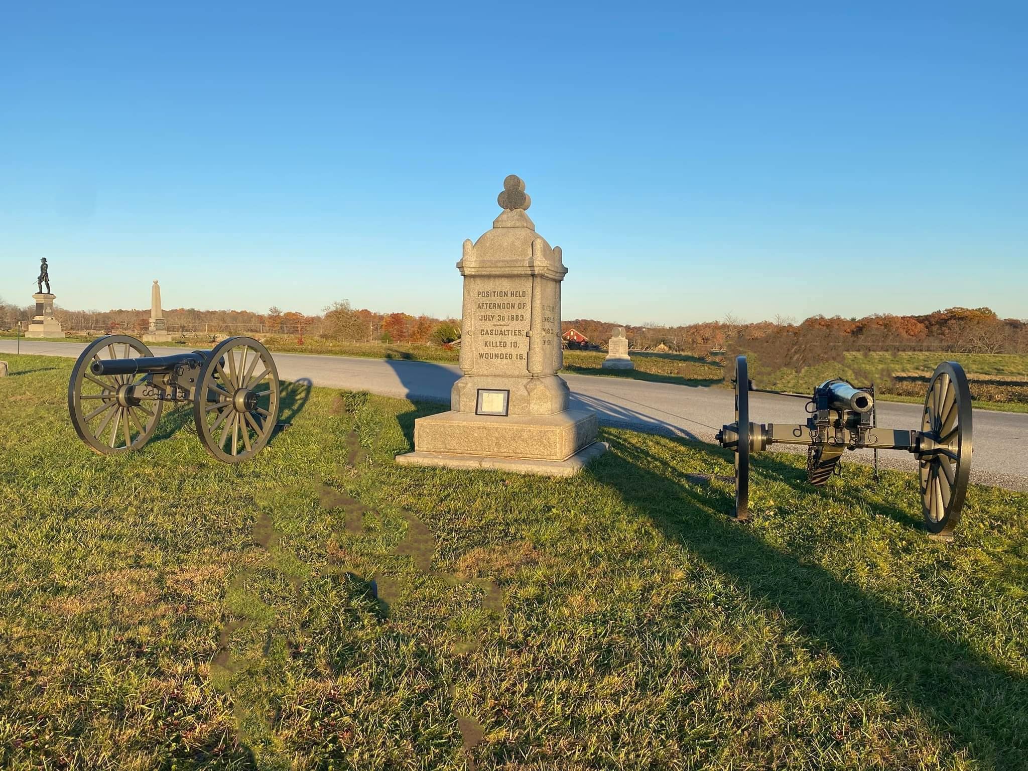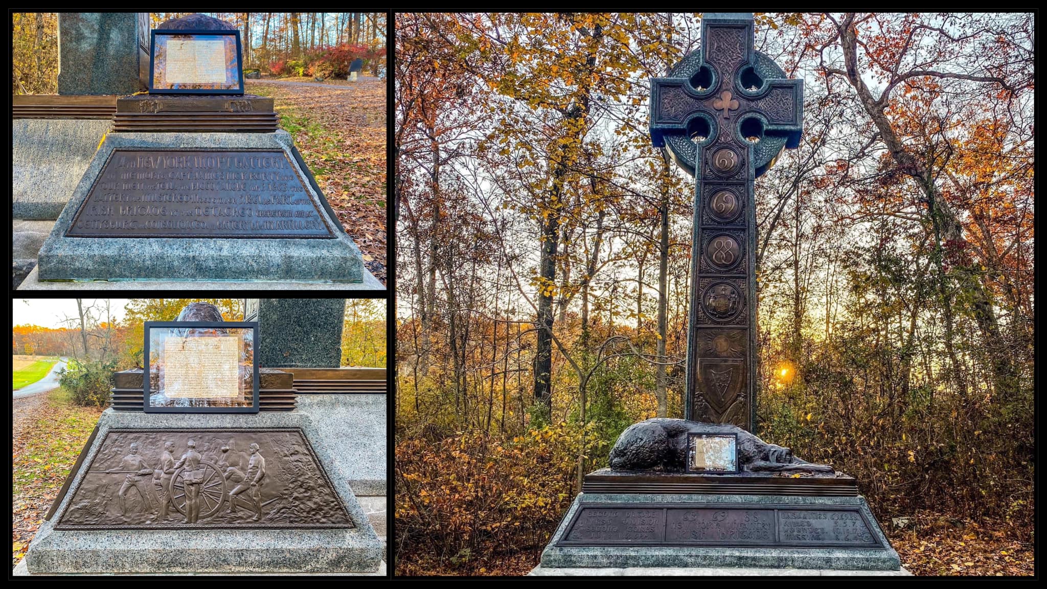 “14th New York Ind’pt Battery. In memory of Capt. James Mc.K. Rorty and four men who fell at the bloody angle July 3, 1863. The battery was mustered in December 9, 1861, as part of the Irish Brigade. it was detached therefrom and at Gettysburg was consolidated with Battery B, 1st N. Y. Artillery.”