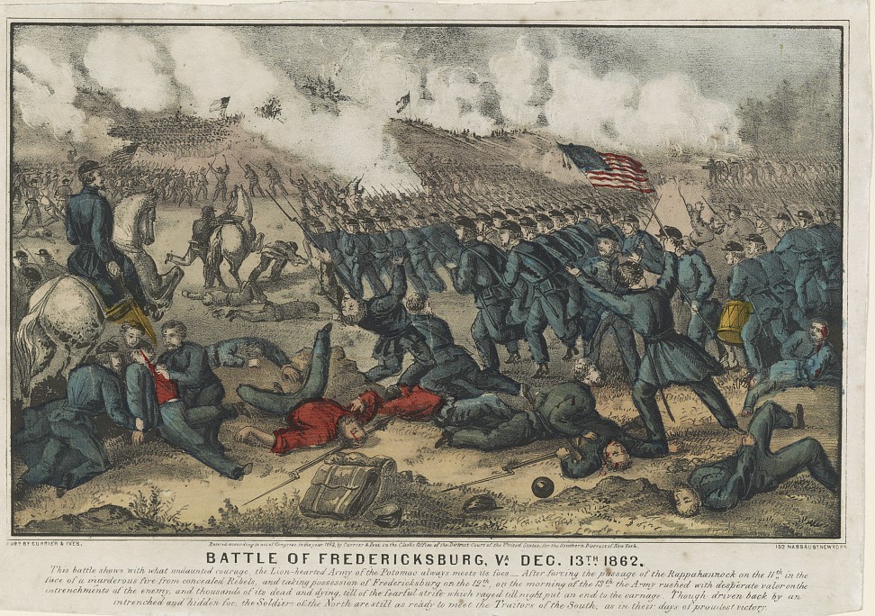 They would continue to fight at Yorktown, Gaines’ Mill, Savage’s Station, Malvern Hill, 2nd Bull Run, and Antietam. Here “the Thirteenth were held in the reserve under General Porter. At nightfall on the 18th were deployed as pickets in front of General Burnside’s position—the next morning advancing as skirmishers through Shepardstown, taking some prisoners from the rear guard of the enemy” [4]. At Fredericksburg, Sullivan and the thirteenth began “Coming under fire immediately on reaching Fredericksburg bank of the river, we were advanced through the north end of the town, across the open ground beyond the railroad, taking our position to the extreme front, our line facing the stone wall and rifle pits occupied by the enemy, and within close range of their artillery on the immediate heights beyond and to the right and left. The men were obliged, from the exposure of the position, to fire lying down, thus taking advantage of a slight rise of ground running parallel to the front of our line. The fire of the enemy was very severe, both from artillery and musketry, especially during our advance to position. The Thirteenth were engaged receiving and returning fire until nightfall, and remaining in their position that night and the day following, and were only relieved about 10 o’clock p. m. Our loss was quite severe, out of 298 officers and men five were killed, sixty-three wounded, and seventeen taken prisoners”[5].