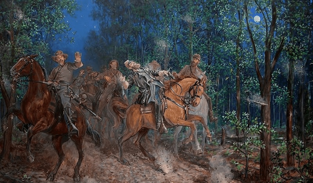 In 1863, during the Wilderness Campaign, General Jackson was out scouting the area at dusk when he came upon a picket made up of General William Dorsey Pender’s North Carolinians. He was mistaken for the enemy and shot three times in the left arm, resulting in its amputation.