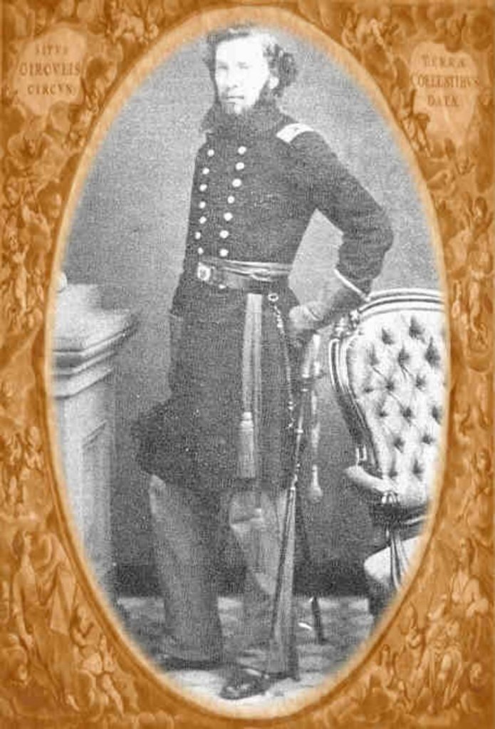 “Captain Garrett Nowlen, then in command of the Regiment, stood up in front, waving his sword and cheering on the men. At that moment, a ball pierced his heart. For an instant, he was motionless, then turning quickly to where the men of his own company were in line, he looked towards them and waved his hand: — ‘Good-bye, boys, good-bye — good-bye.’ He was falling when he repeated the last words, and when he struck the ground, he was dead.”[27]