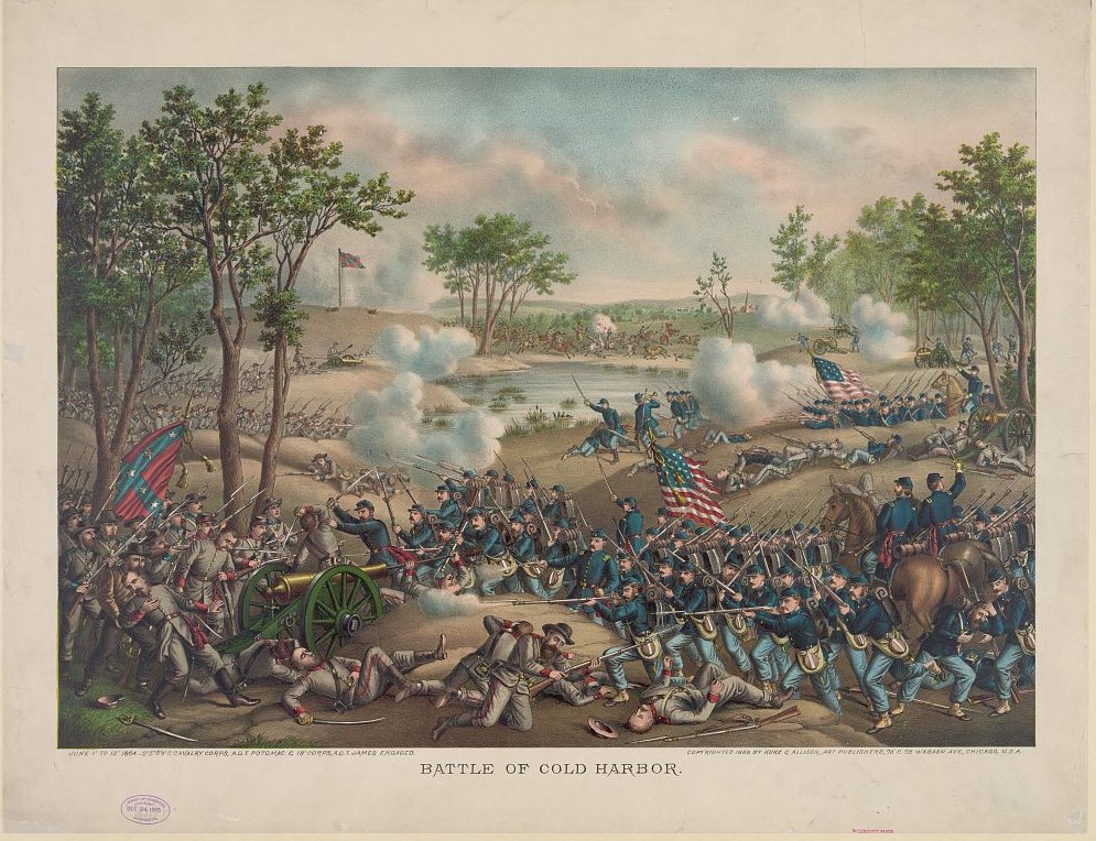 The Battle of Cold Harbor began at 4:30 a.m. with an advance by the Union. The Union troops were met with a devastating Confederate fire, causing heavy losses. Despite the intense resistance, they managed to drive the Confederates from a sunken road and capture 300 prisoners, a battle flag, and artillery.[23].