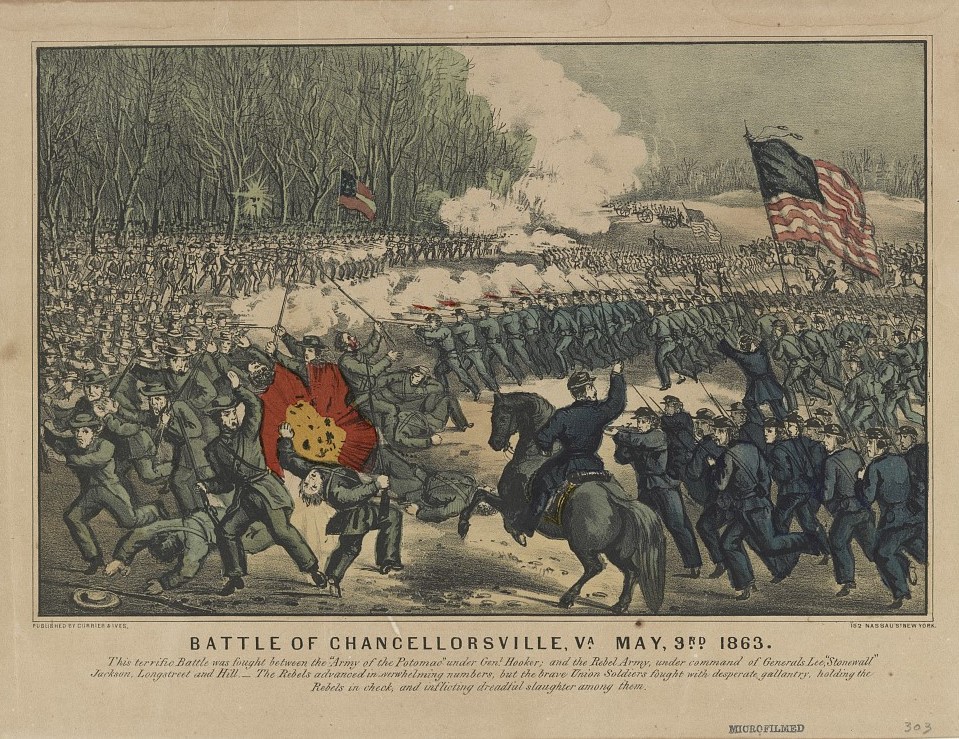 The following day, May 1, the Regiment was positioned with the right, flanking the plank road that extends from Fredericksburg to Chancellorsville and the left, flanking the river. They waited all day for an assault that never came while listening to the distant crash of war. The next day, they were moved to fill a gap on the right flank; here again, they heard the roar of battle as they fixed fortifications and turned all the local structures into blockhouses. Brigadier General Thomas Francis Meagher visited the line in the afternoon to encourage his men. A little later, an officer rushed to the commander to report on the enemy’s progress. Just then, a startled deer fled through the battlefield just before Confederate General Stonewall Jackson’s 26,000 men launched a surprise attack on the Union Army’s right side. The musket fire intensified, and Union soldiers, particularly from the Eleventh Corps, began to panic and retreat in confusion. Some got caught in the abatis (defensive obstacles), while others frantically tried to flee. However, Brady and the 116th Pennsylvania and others in the Irish brigade remained steadfast, blocking and reorganizing the fleeing soldiers.